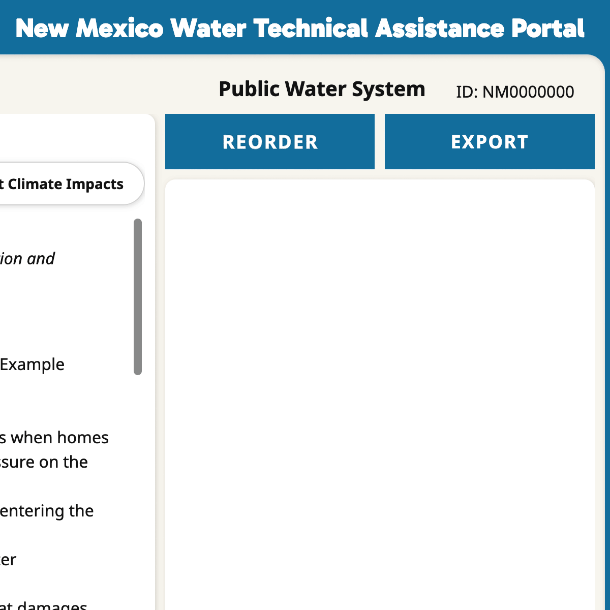 The information provided on this website is intended to assist public water system operators and managers by consolidating and displaying data obtained from the New Mexico Environment Department Drinking Water Quality Bureau and other sources. The New Mexico Interstate Stream Commission makes no representation regarding the accuracy of the data shown in this tool and cannot make corrections or additions to data obtained from outside sources.